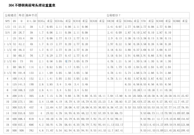 不銹鋼彎頭理論重量表